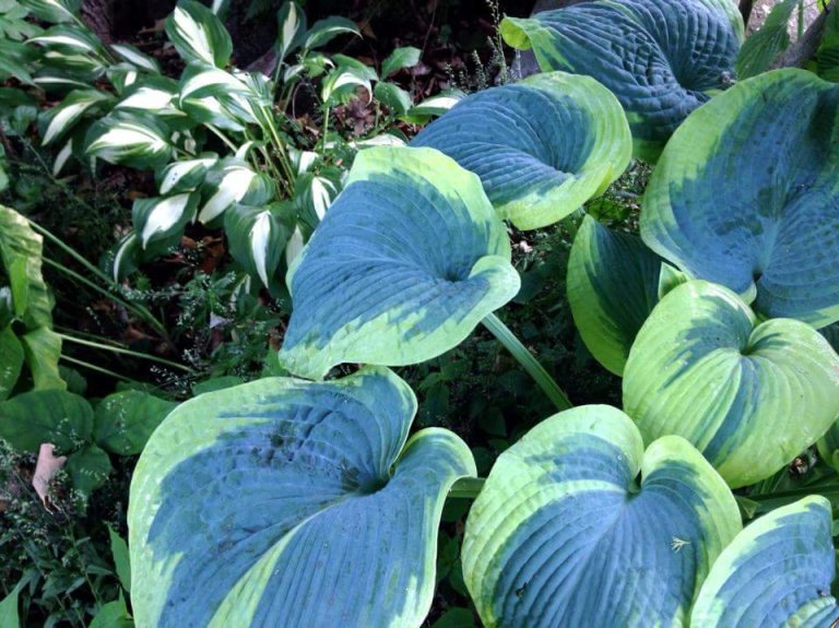 Another view of a few hosta types.