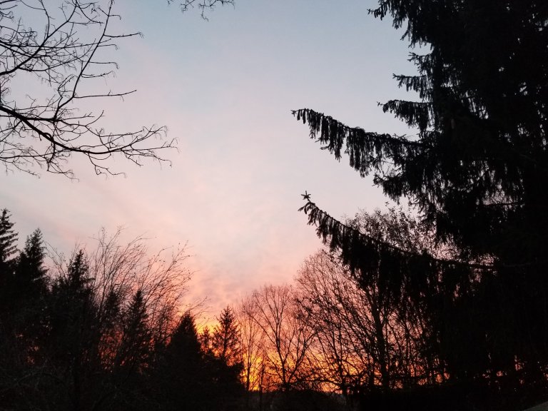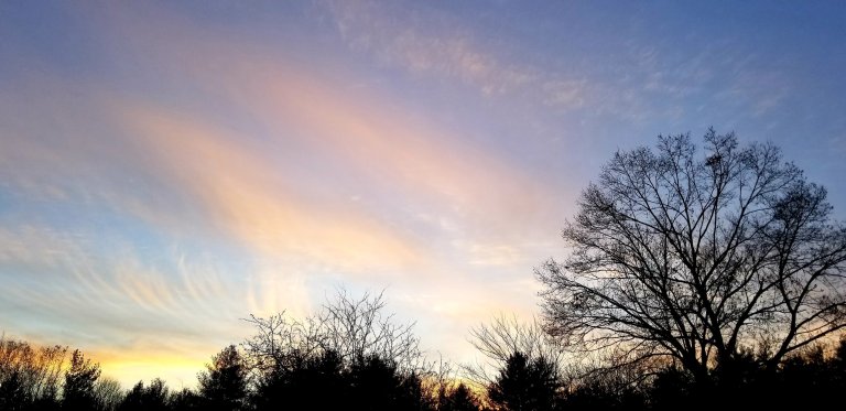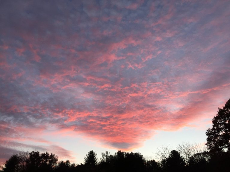 So far, I’ve been sparing you the umpteen million pictures of clouds I tend to take. Like Amélie, I love to take pictures of cloud formations & any striking colors they might mirror from the sun. Sometimes, I’m lucky, finding spectacular sunrises or sunsets, so I try to be observant & run outside if I catch something unusual.